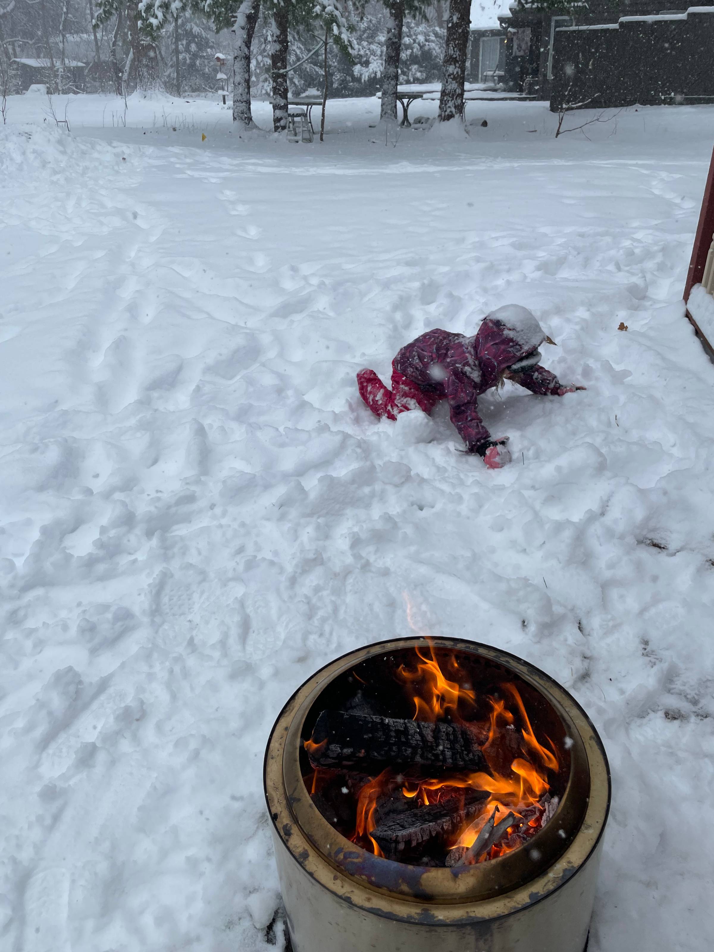 The day after Thanksgiving, snow hit us and it has been so fun to see our kids enjoying the snow outside by sledding and building snow structures. We have enjoyed having our Solo Stove out in the cold and laugh as the kids warm up next to it and we see steam coming off of their wet, play-ridden snow clothes. We are already in our sequence of "go play outside in the snow for a while" and then "come warm up by the fire and have some hot cocoa."